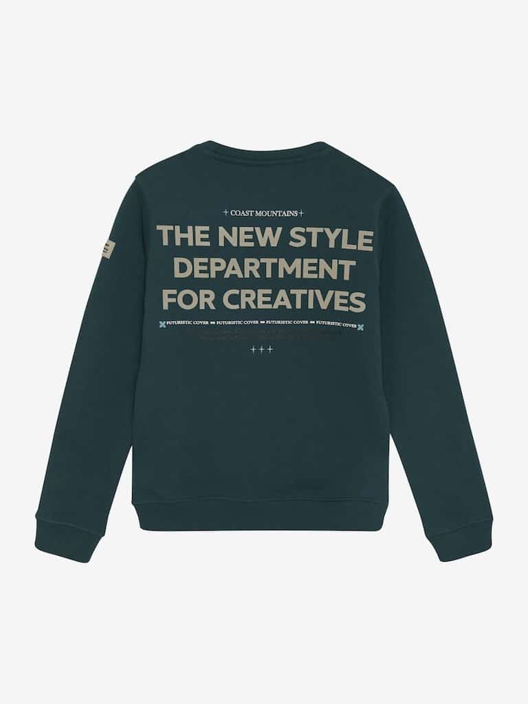 Lekker zachte sweater van Indian Blue Jeans in donkergroene kleur met grote print achterop.